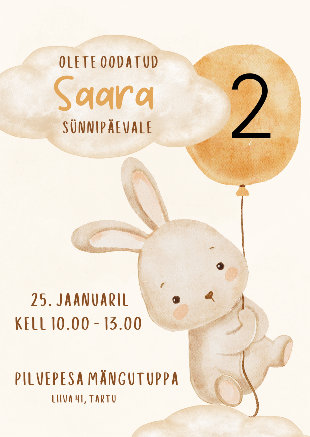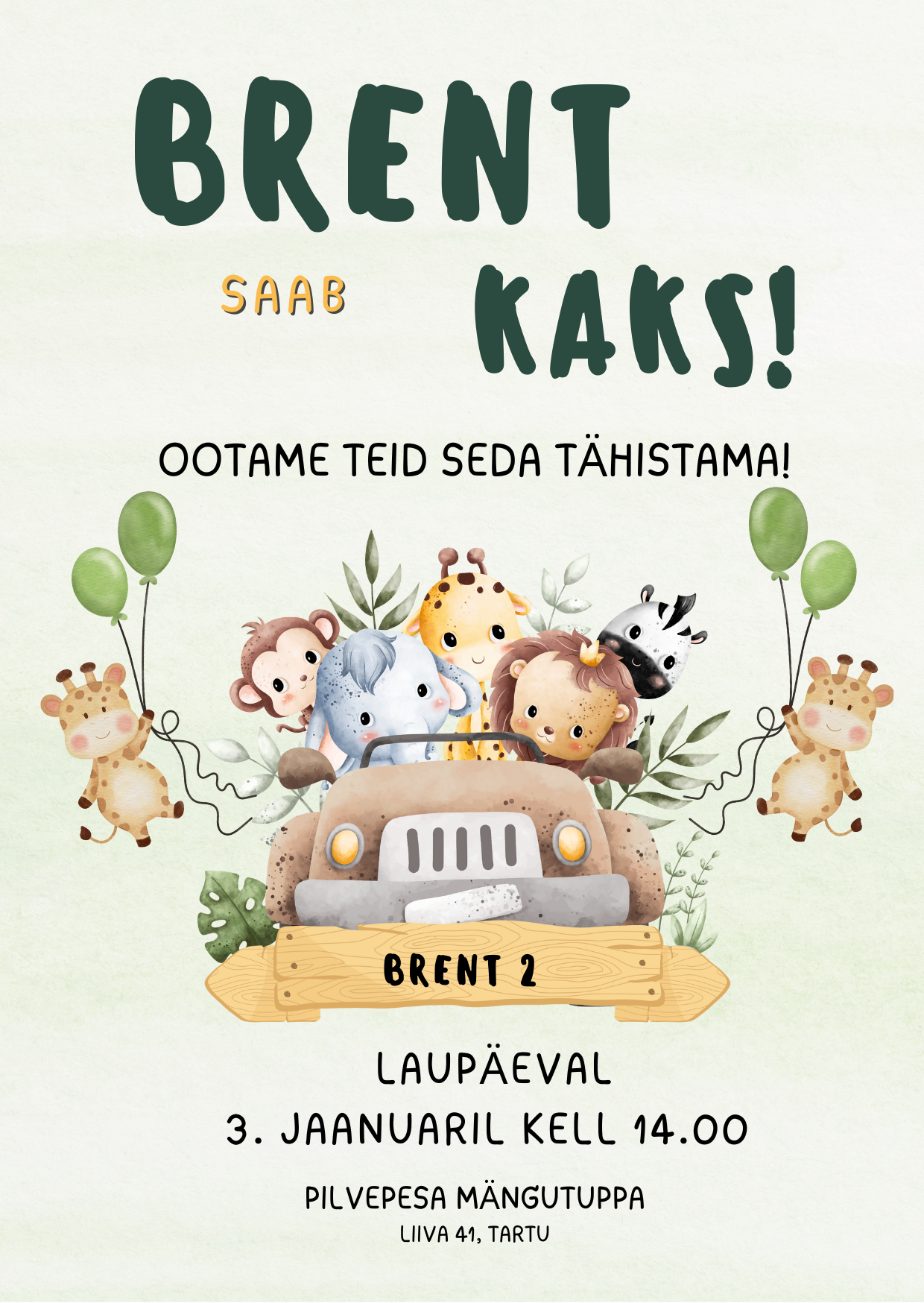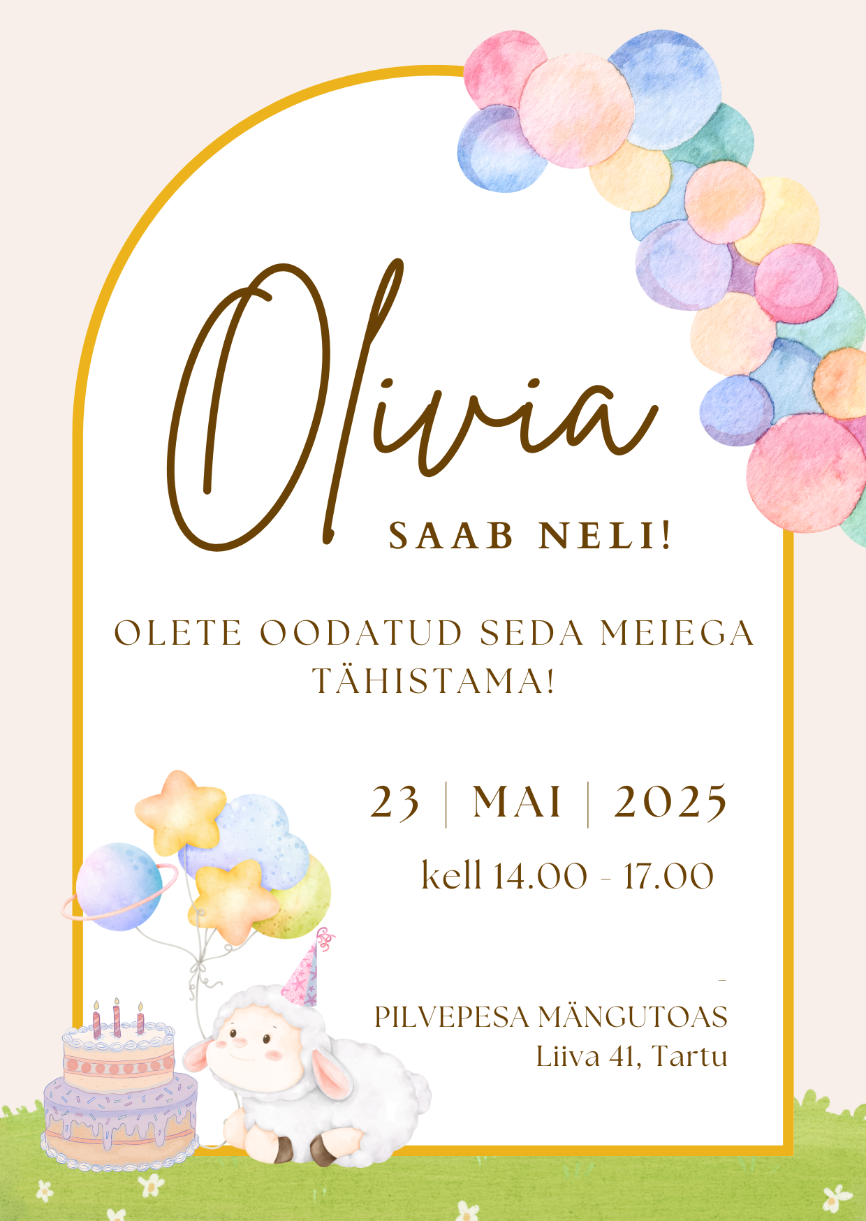 - kutsele kirjutatav nimi ja kui on, siis mitmes sünnipäev on